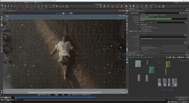 Amamia is a music video for the song by Shahar Tavoch and Margol. I created slow-motion 3D sunflower seeds falling beside Shahar as he lay on a real bed of seeds. To seamlessly blend the CG seeds with the real ones, I used Houdini’s RBD workflow to slow their movement as they neared the ground, ensuring they settled naturally and integrated smoothly with the practical footage.